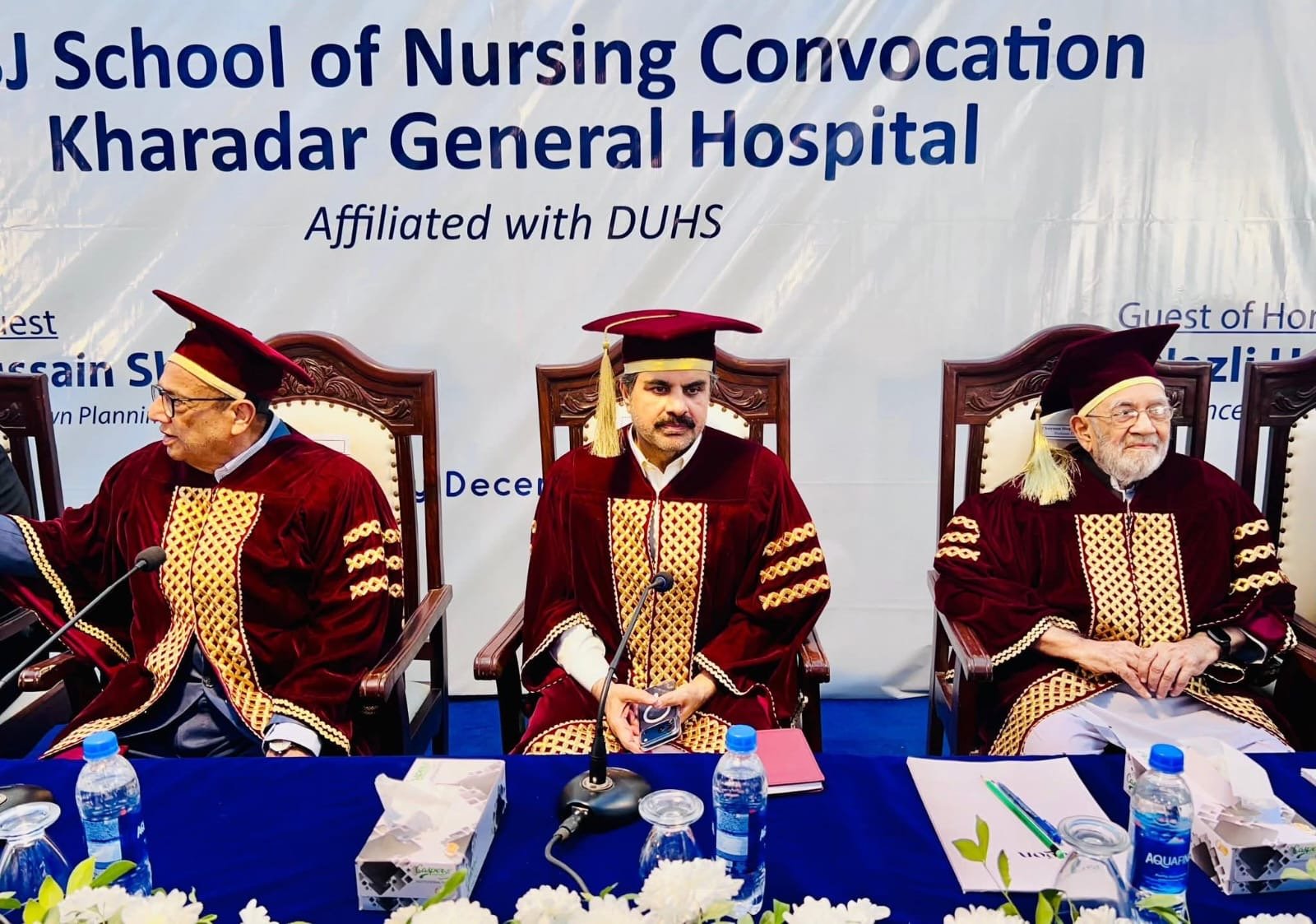 چیئرمین کھارادر جنرل ہسپتال، ستارہ امتیاز یافتہ پروفیسر عبدالغفار بلو نے کہا کہ آج کی تقریب امید، خوشی اور روشن مستقبل کی علامت ہے۔ انہوں نے کہا کہ ڈاؤ یونیورسٹی آف ہیلتھ سائنسز پیشہ ورانہ مہارت اور بین الاقوامی معیار کی تربیت کے فروغ میں اہم کردار ادا کر رہی ہے، جبکہ کھارادر جنرل ہسپتال کا اسکول آف نرسنگ اپنی اعلیٰ تدریسی معیار اور جدید سہولیات کے باعث علیحدہ شناخت رکھتا ہے۔