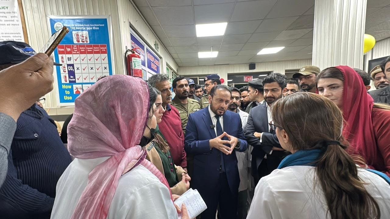 گوجر خان: صوبائی وزیرِ صحت و آبادی پنجاب خواجہ عمران نذیر نے تحصیل ہیڈکوارٹر ہسپتال گوجر خان کا اچانک دورہ کیا، جہاں انہوں نے ہسپتال کے مختلف شعبہ جات کا تفصیلی معائنہ کیا اور فراہم کی جانے والی طبی سہولیات کا جائزہ لیا۔